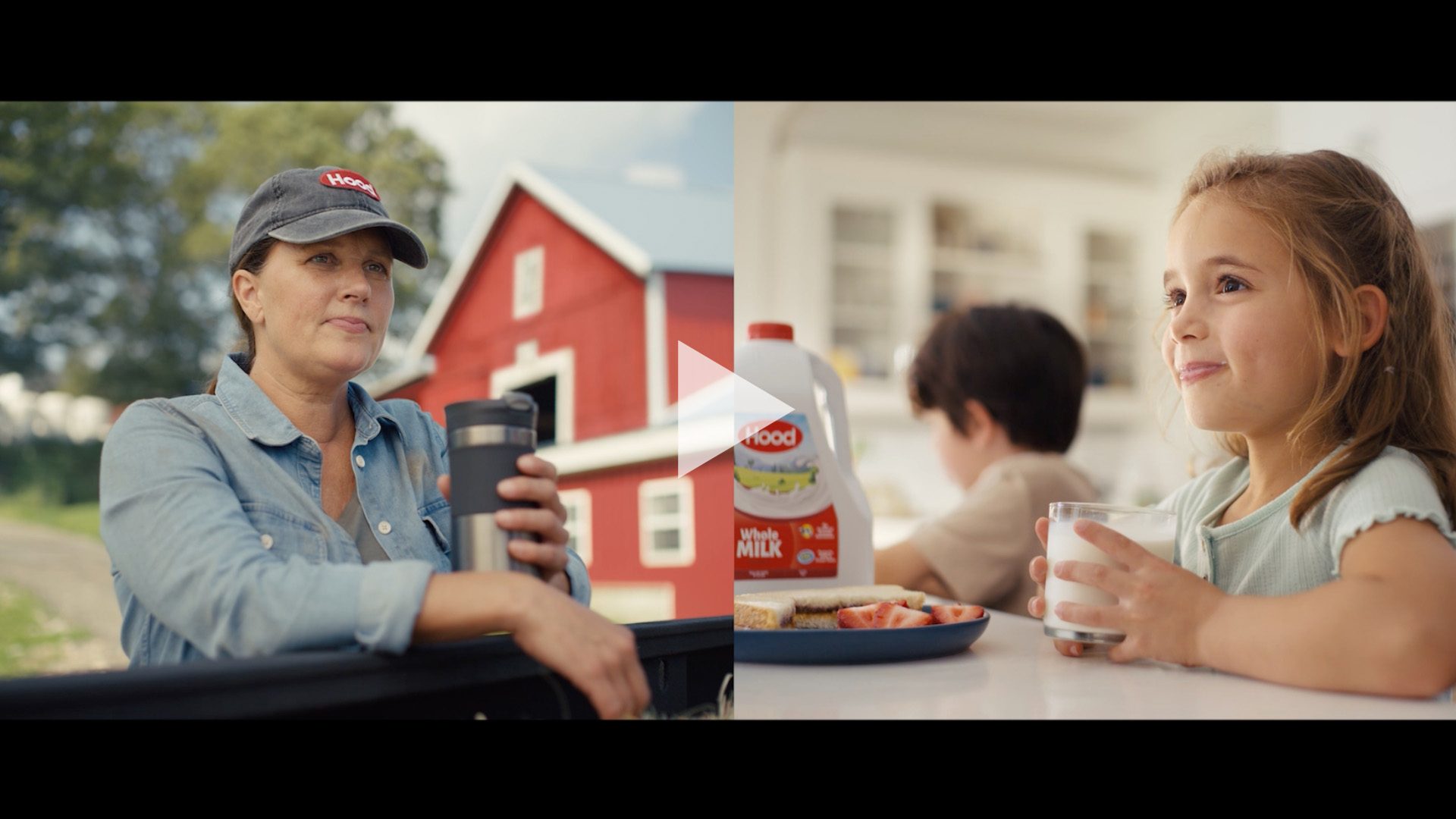 Hood’s dairy farmers are the ones who uphold the rigorous standards that ensure Hood Milk is a choice moms can feel good about. Using a split-screen of carefully planned yet beautifully true-to-life moments, we showed that farmer-to-family bond as never before.