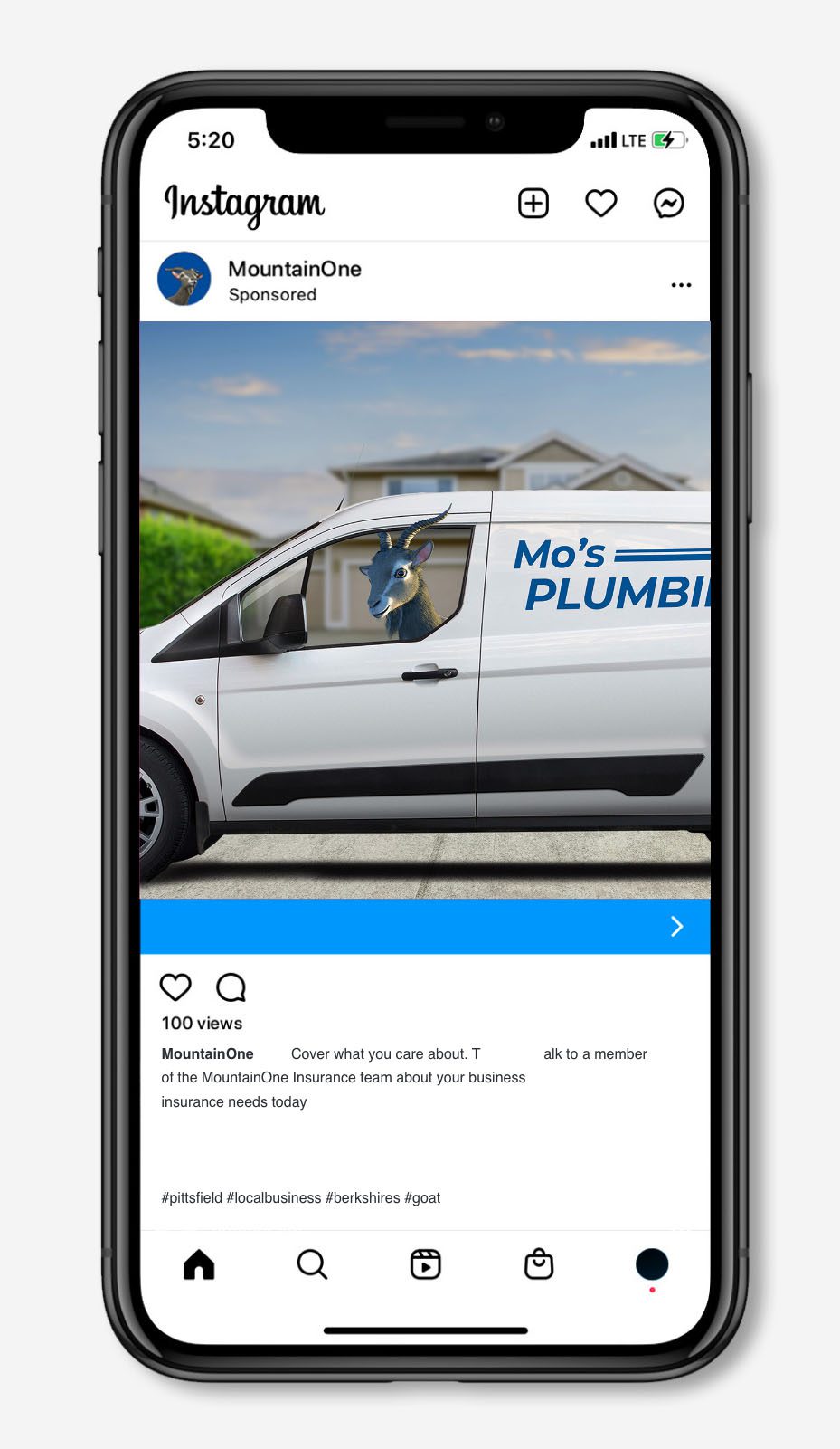 Once we introduced Mo, we put our spokesgoat to work everywhere from TV spots for home and business lending, to billboards for auto insurance, to — of course — social.