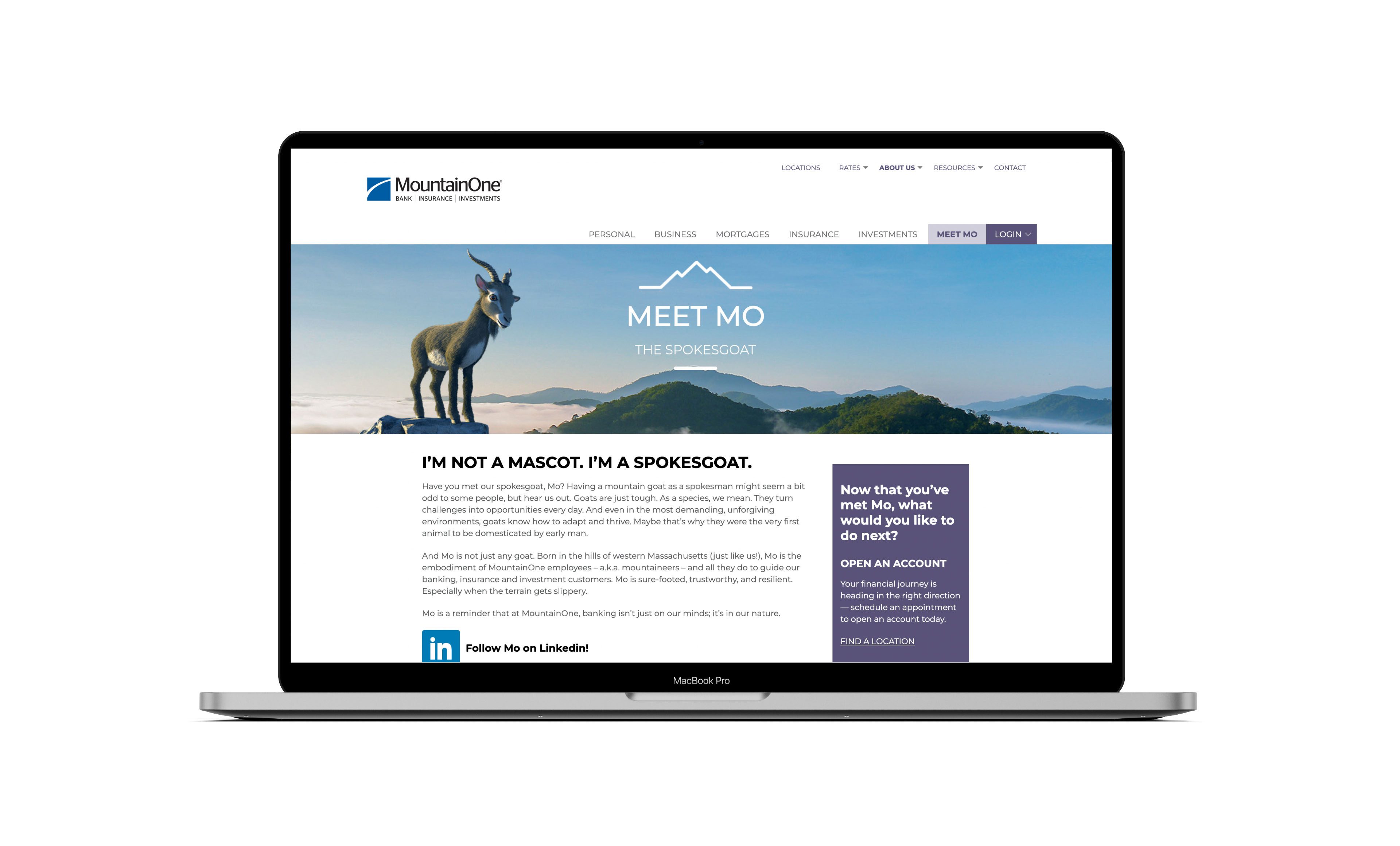 “Having a spokesgoat helps our bank stand out in a crowded category and lets us talk about financial services with a sense of humor.”