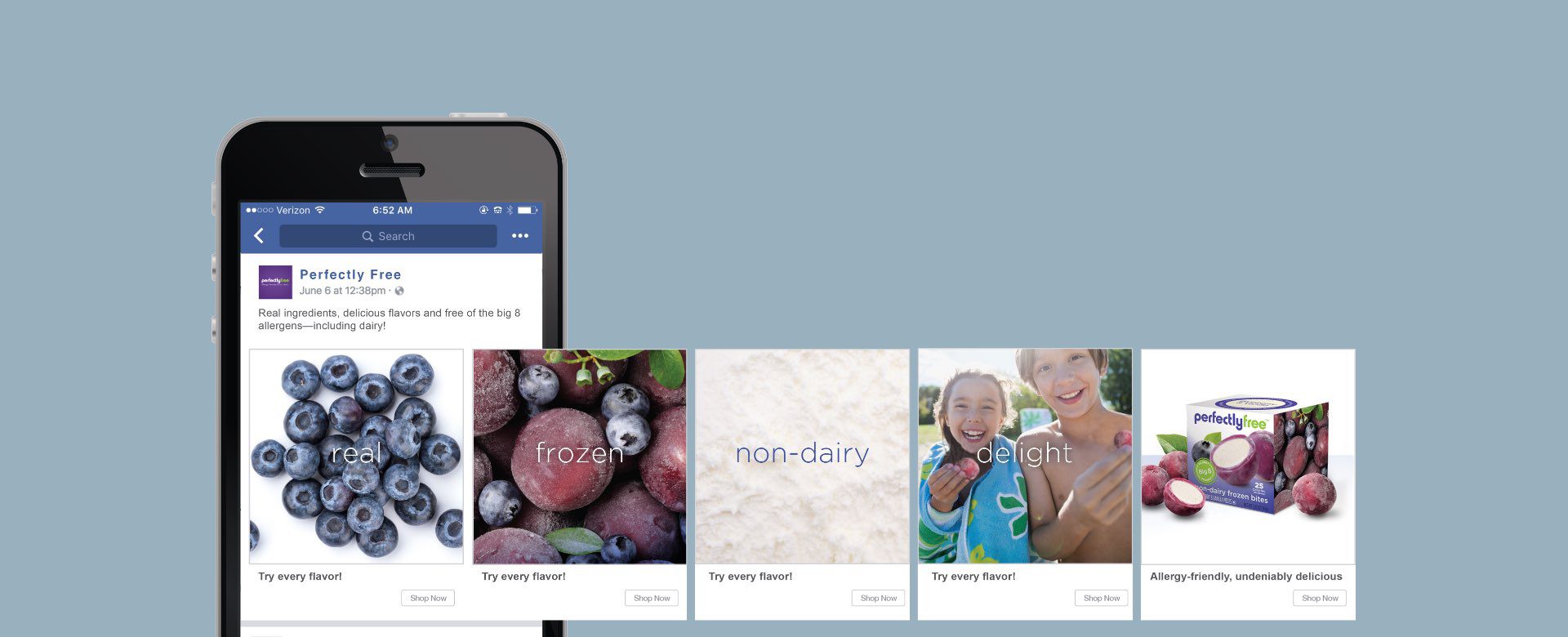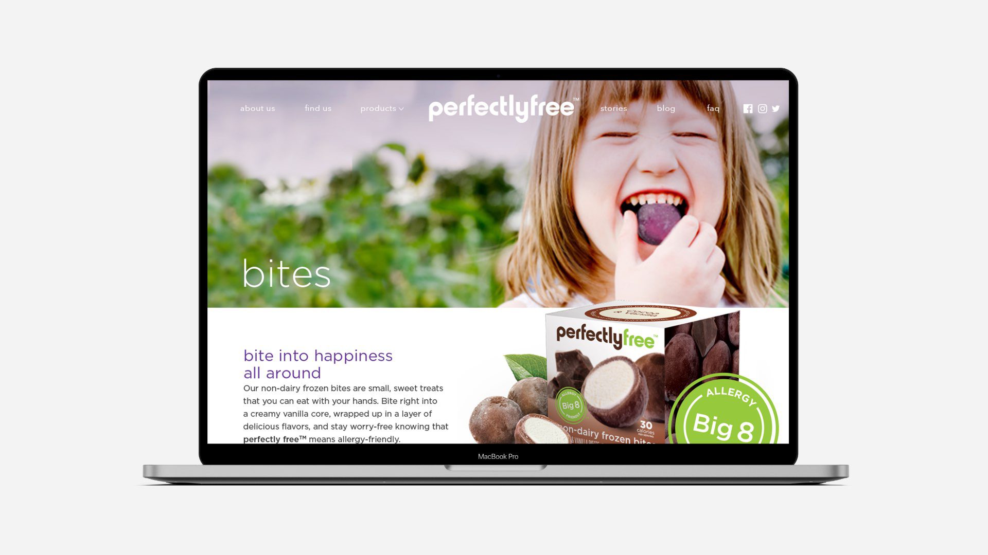 Incredible Foods’ frozen treats are non-dairy, non-GMO, vegan and free from the big 8 allergens. That’s a lot of “non-”s. Our perfectlyfree rebrand kept those key omissions in the mix — but balanced them with fun, appetizing language and sweet, colorful imagery.